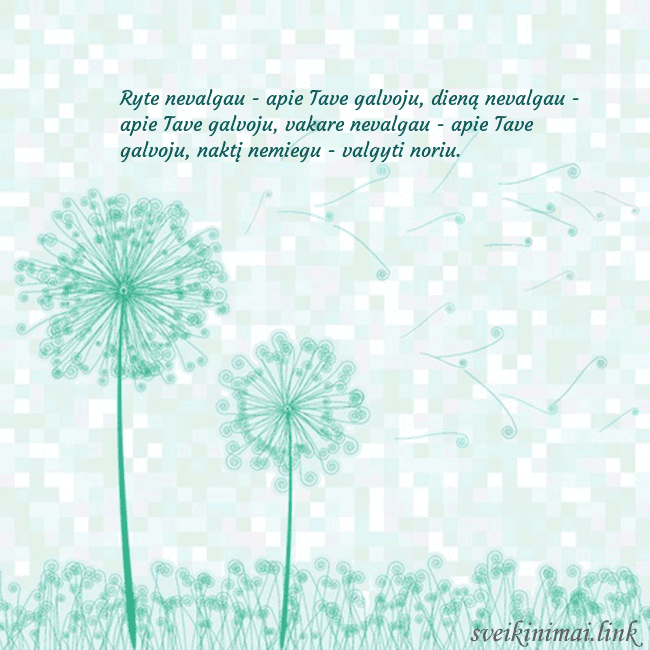 Ryte nevalgau - apie Tave galvoju, dieną nevalgau - apie Tave galvoju, vakare nevalgau - apie Tave galvoju, naktį nemiegu - valgyti noriu.
